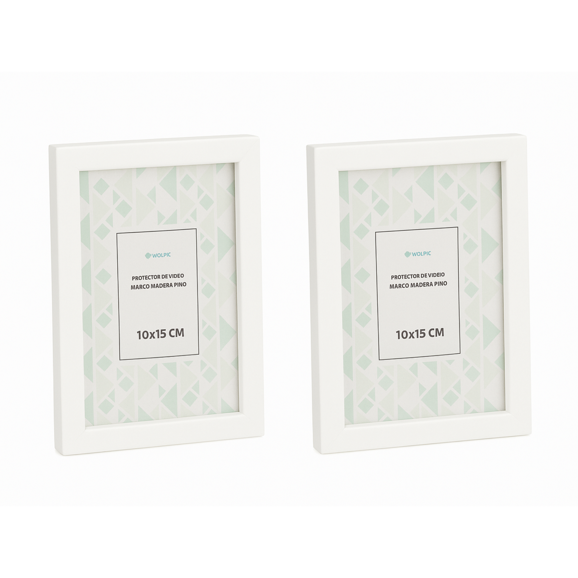 Set 2 Portarretratos de 10x15 cm marco de madera pino, con vidrio, tapa y parante rígidos